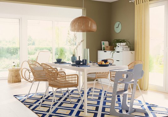 Der meist lichtdurchflutete Wintergarten bietet ein schönes Ambiente für einen Essbereich. Im Mittelpunkt des neu geschaffenen Raumes steht dann ein Tisch mit Stühlen. Freiraum rund um den Tisch setzt diesen Ort der Zusammenkunft erst richtig in Szene. Eine große Familie kann von einem eigenen Esszimmer gleich mehrfach profitieren. So lässt sich der Tisch natürlich nicht nur zum Essen nutzen, sondern auch für gemeinsame Spieleabende, zum Basteln, Hausaufgaben machen oder als temporäres Homeoffice. Eine Grünpflanze hier und da reicht als Dekoration vollkommen aus, denn die Nutzung allein wird den Raum schon mit Farben und Lebensfreude erfüllen.